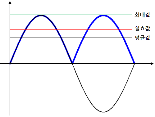 문제점: 정현파는 양(+)과 음(-)의 값이 상쇄되어 단순 산술 평균은 0이 됩니다.