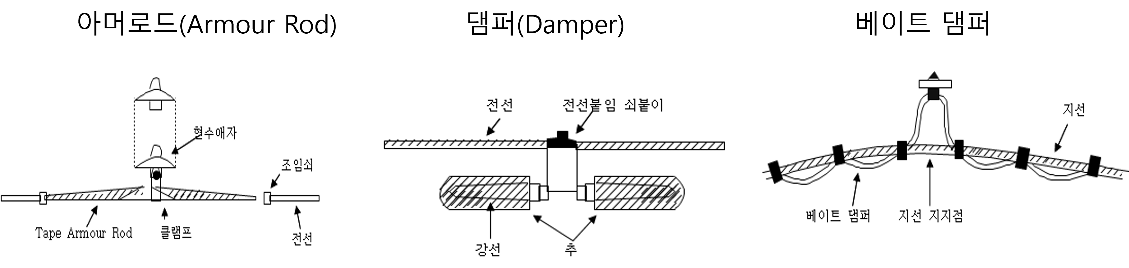 - 전선의 진동은 공진 현상으로 인한 피로 및 단선을 초래할 수 있으므로 적절한 댐퍼와 아머로드 등으로 예방해야 합니다.