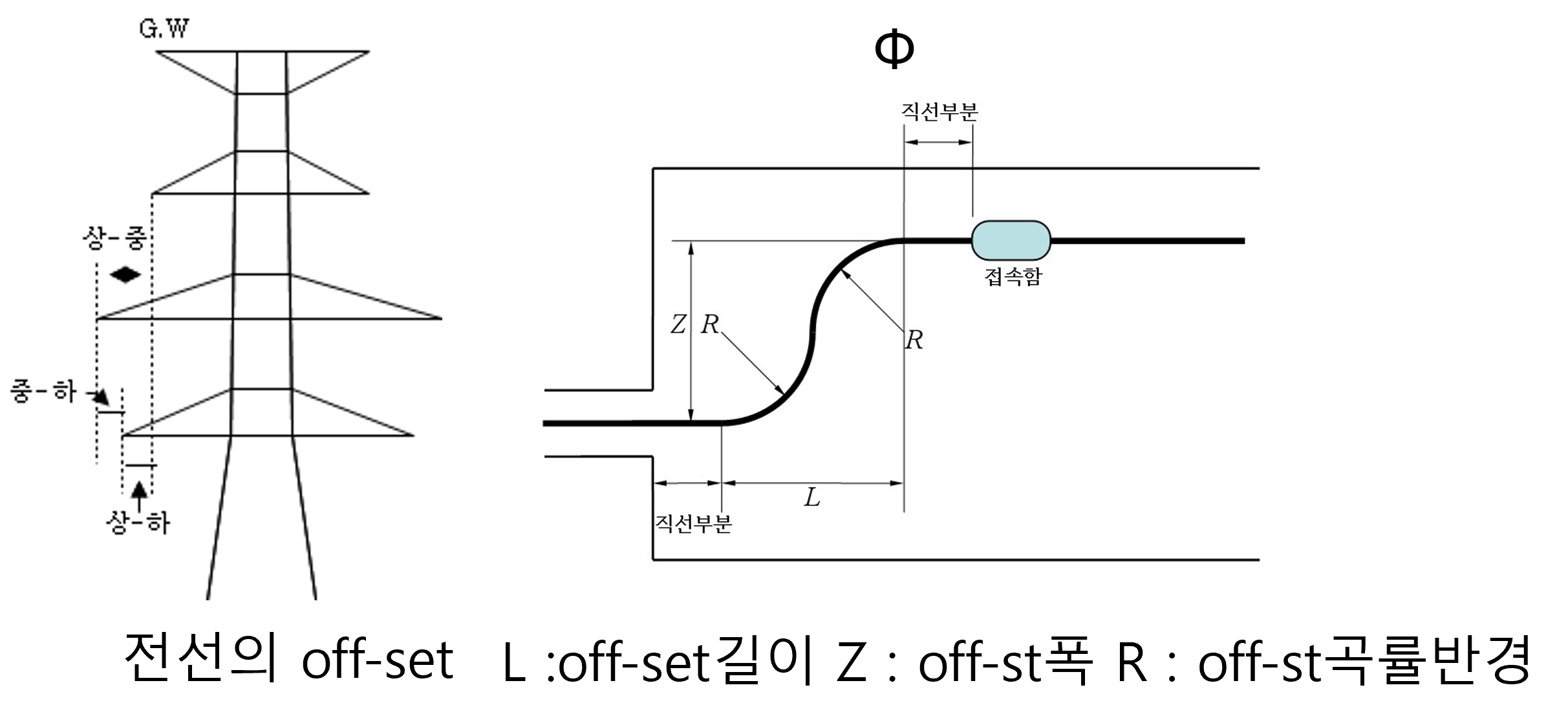 전선 사이에 간격을 유지하기 위한 스페이서를 설치합니다. - 철탑 오프셋: